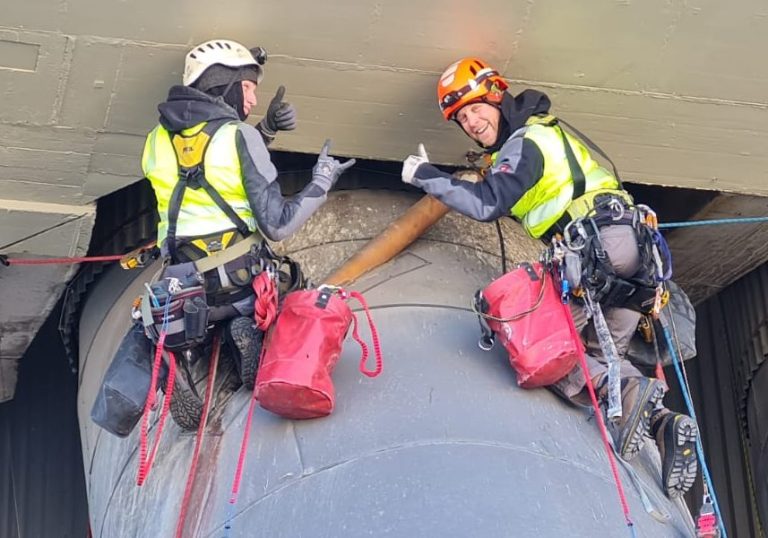 Vertrauen Sie den Profis am Seil: Peter und Armand verfügen über die höchsten Zertifizierungen für Industriekletterer (IRATA Level 2 bzw. 3).